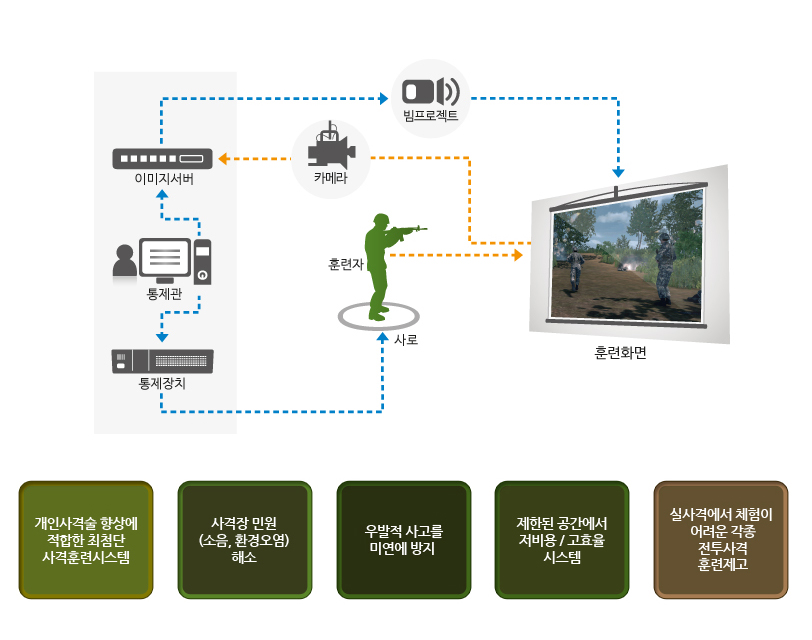 - 사격술 향상을 위한 시스템을 구축함으로서 부대이동, 기상 조건에 따른 훈련제약 등을 최소화 할 수 있는 시스템