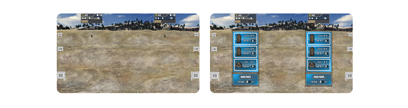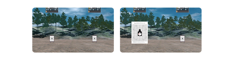 - 실제 사격기 내부환경 요소인 호흡, 자세, 격발 등을 통하여 자산의 개인화기 이해와 정확한 조준점을 제공