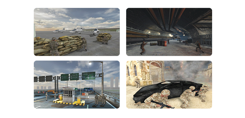 - 전술 훈련 실제 실시의 제약요소를 극복한 다양한 모의 전투 환경에 기반을 둔 미래 전투 환경 대비 전술 숙지 훈련